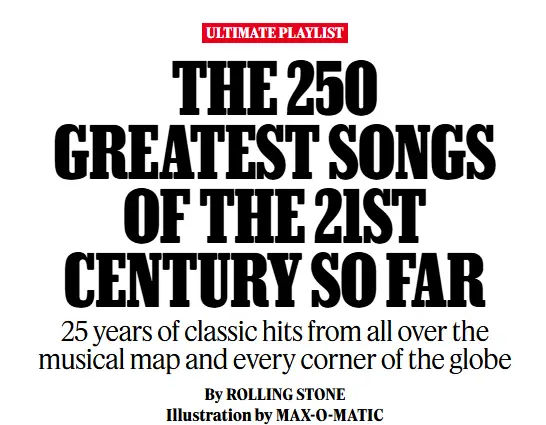 Rolling Stone has released another one of its “greatest” lists, this time focusing on the best songs released so far in the 21st century. This is, of course, clickbait designed to get people