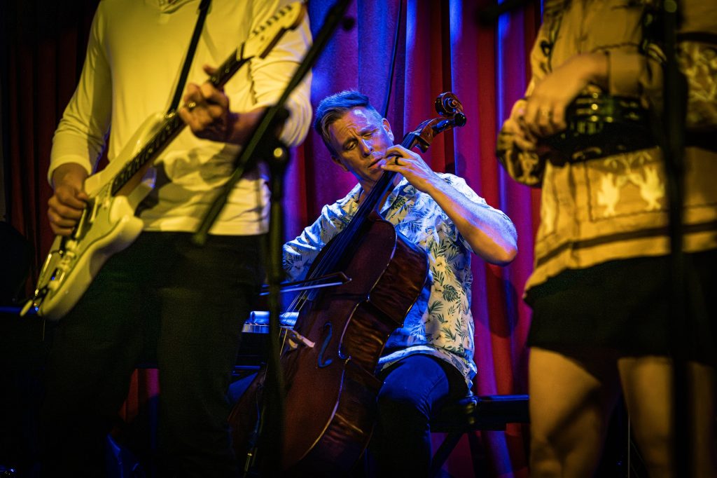 About half an hour later the band, all six members, filed down and through the crowd and onto Neat’s small raised stage. Christopher Wilson on drums and Mike Yates on cello / keys were tucked in the back by the speaker cabinets.