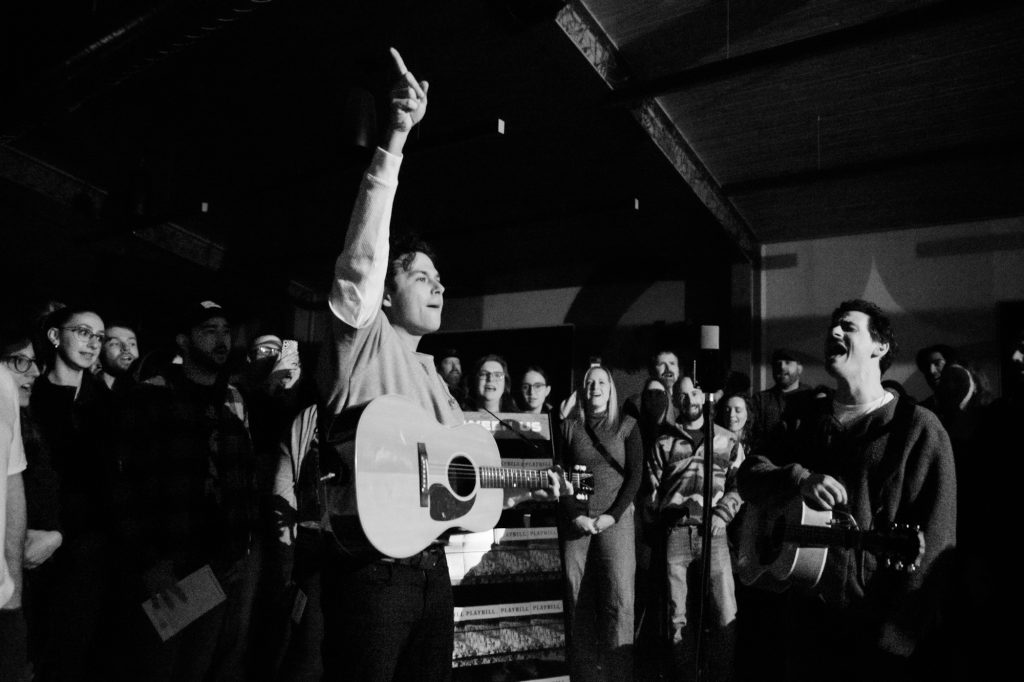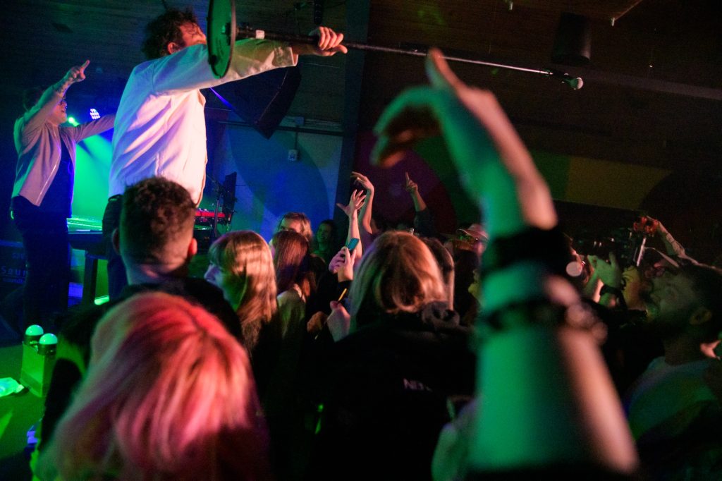 While the crowd anticipated a long wait of an hour standing before the show – an opener emerged. Suddenly surrounded in a circle it was quick to realize the special guest? None other than frontman Max Kerman himself and guitarist/harmonist Mike DeAngelis of the Arkells.