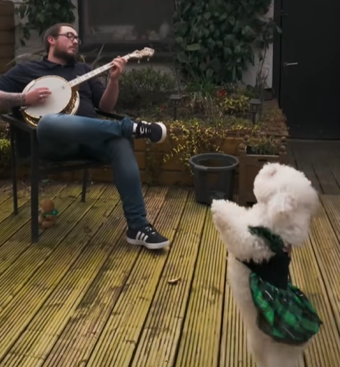 @david.harris.musi Black Friday sale is on now 🐾💃 #bichon #irishdance #dancing #fyp #banjo ♬ original sound – David Harris Music