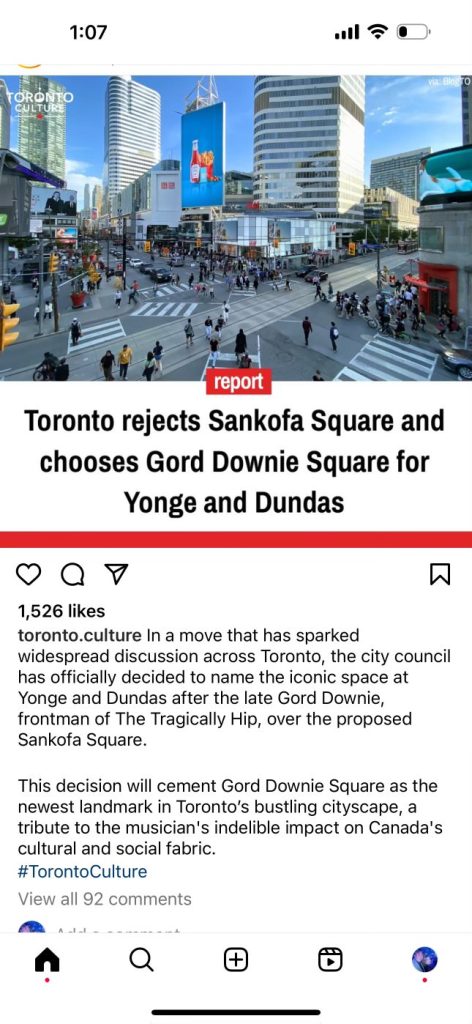 1. Yonge-Dundas Square to be renamed after Gord Downie