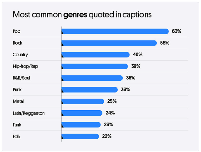 There’s been a study of which bands and song lyrics are used for captions on social media